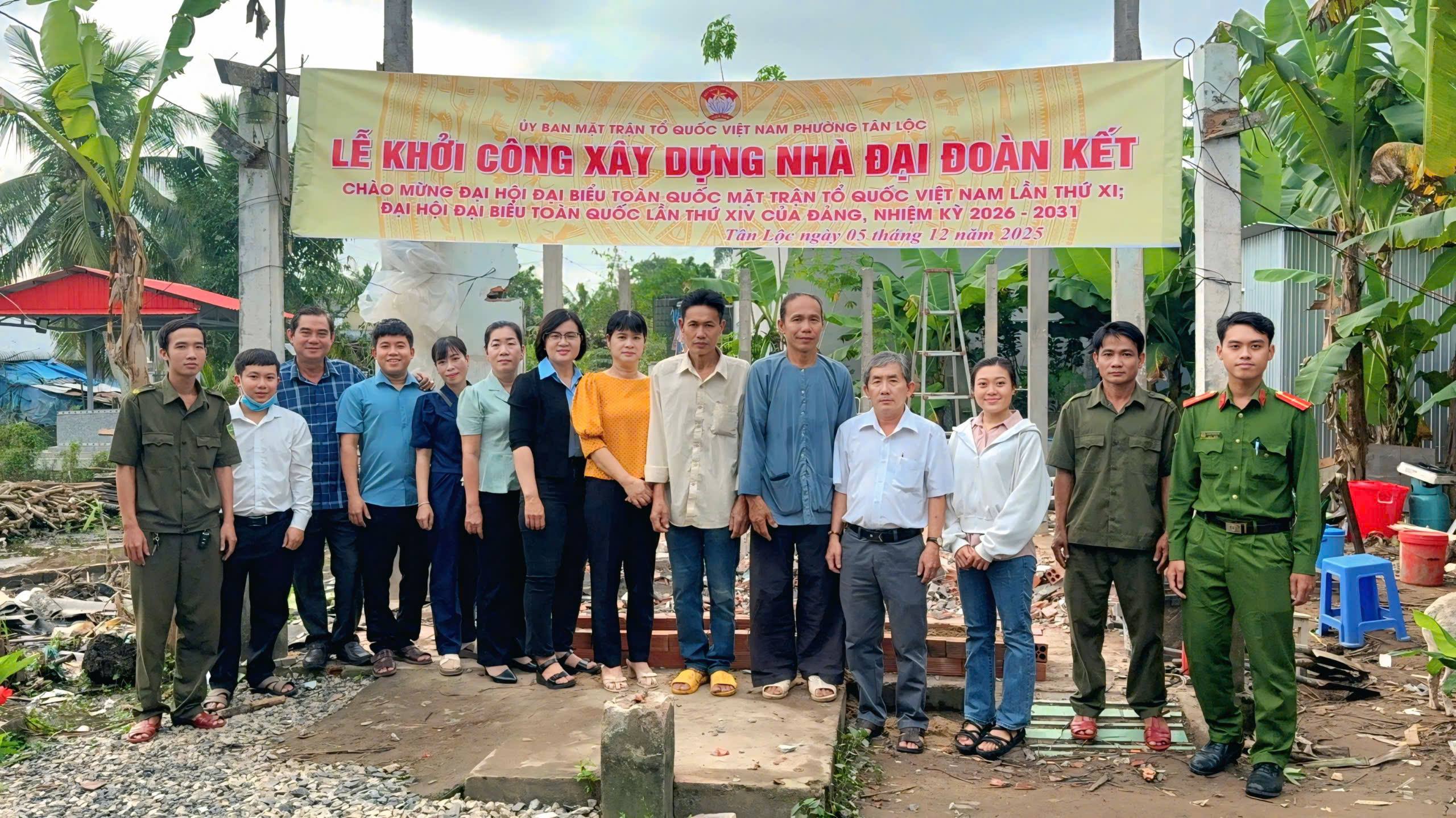 Sáng ngày 5/12/2025, Ủy Ban MTTQ VN phường Tân Lộc, phối hợp UBND phường cùng khu vực Tân An tổ chức khởi công xây dựng nhà Đại đoàn kết cho hộ ông Đặng Văn Túc, hộ có hoàn cảnh khó khăn về nhà ở.