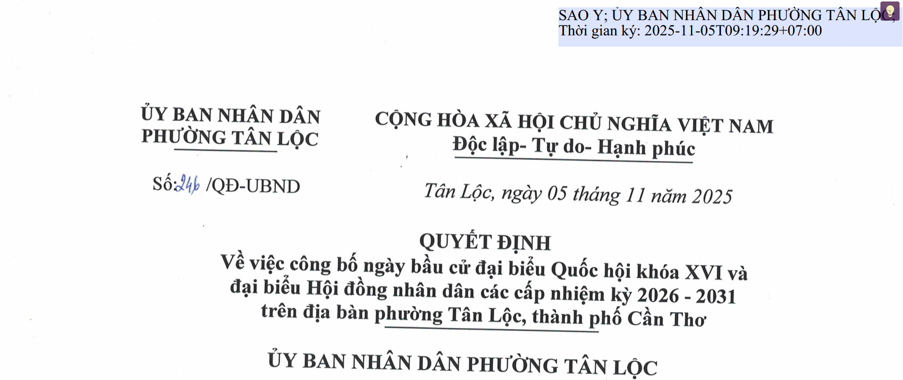 cử phường Tân Lộc.