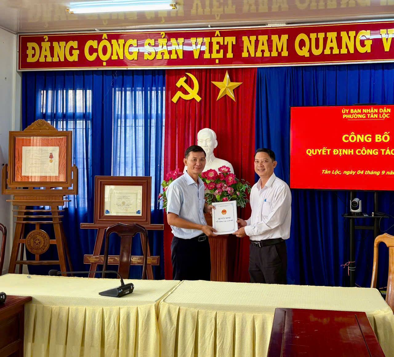Ngày 04/9/2025, UBND phường Tân Lộc tổ chức hội nghị trao quyết định điều